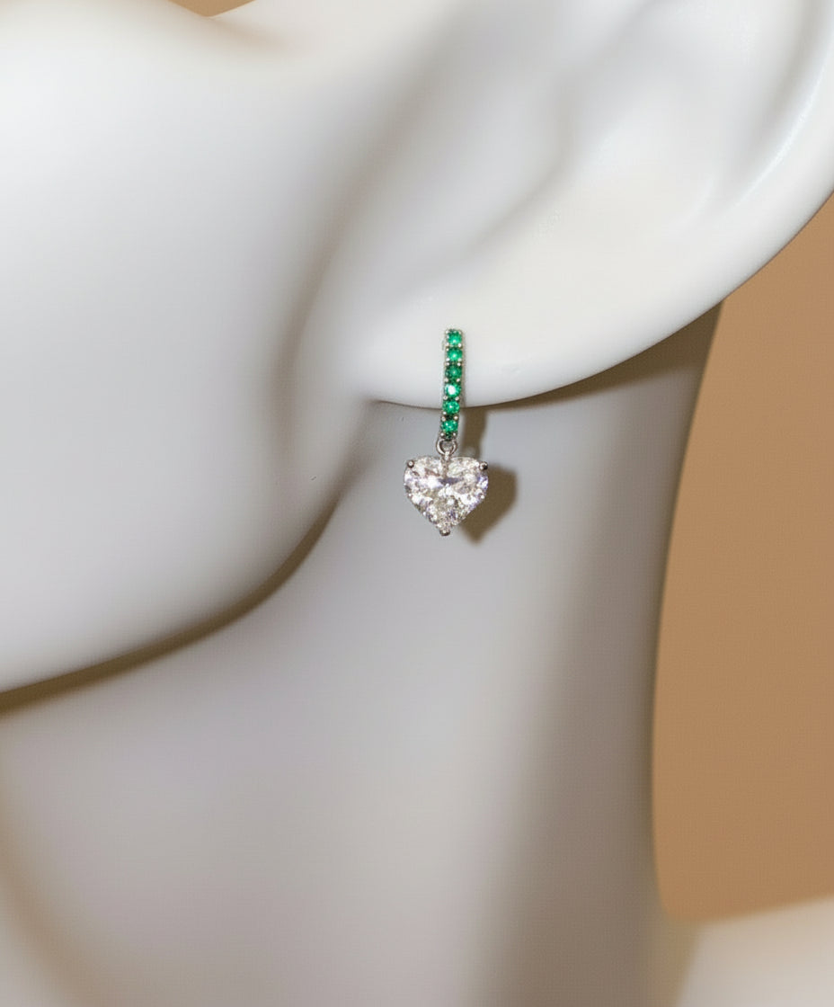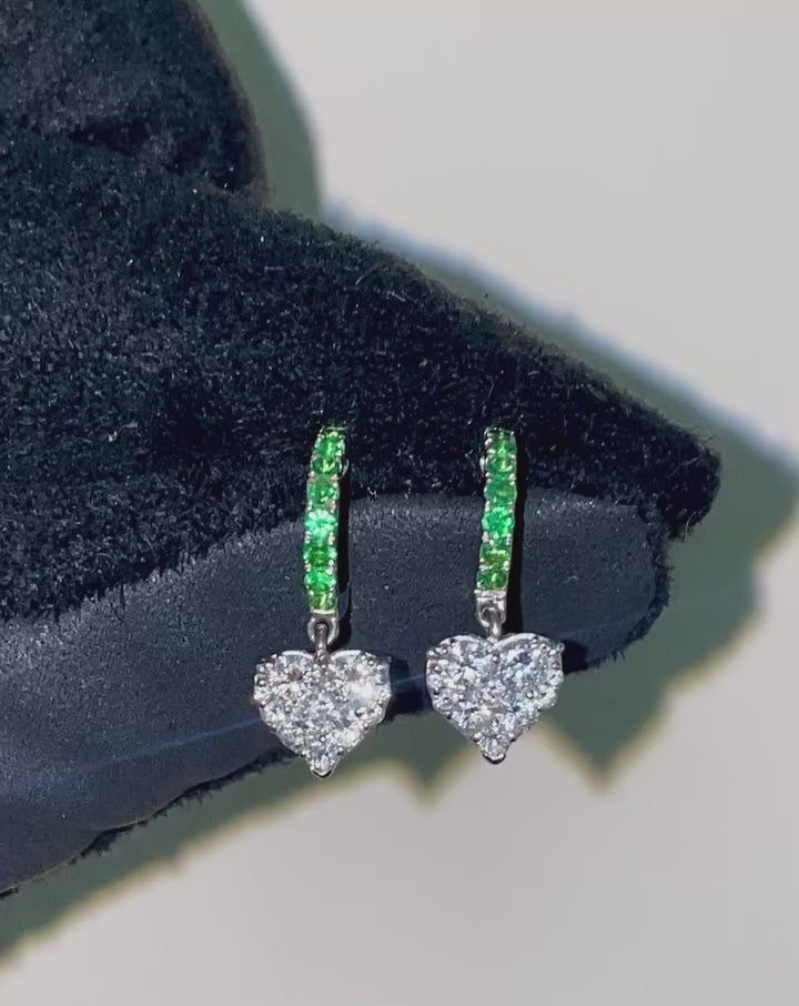 Ohrringe im Diamantherz-Illusions-Design, besetzt mit 0,54 Karat natürlichen Diamanten und 0,23 Karat natürlichem grünen Granat in 18-karätigen Weißgoldfassungen.