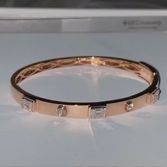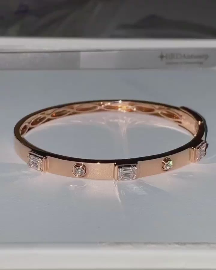 Entdecken Sie das exklusive Armbanddesign „Quince Blossom“ – ein exquisites Schmuckstück mit den Maßen 45 mm x 55 mm. Gefertigt aus 18-karätigem Roségold, besticht dieses elegante Armband durch ein atemberaubendes Ensemble aus hochwertigen, natürlichen Baguette- und Brillanten. Es wurde für die moderne Frau entworfen und vereint auf elegante Weise klassische und trendige Elemente zu einem stilvollen Accessoire. Diamanten insgesamt: 0,65 ct.