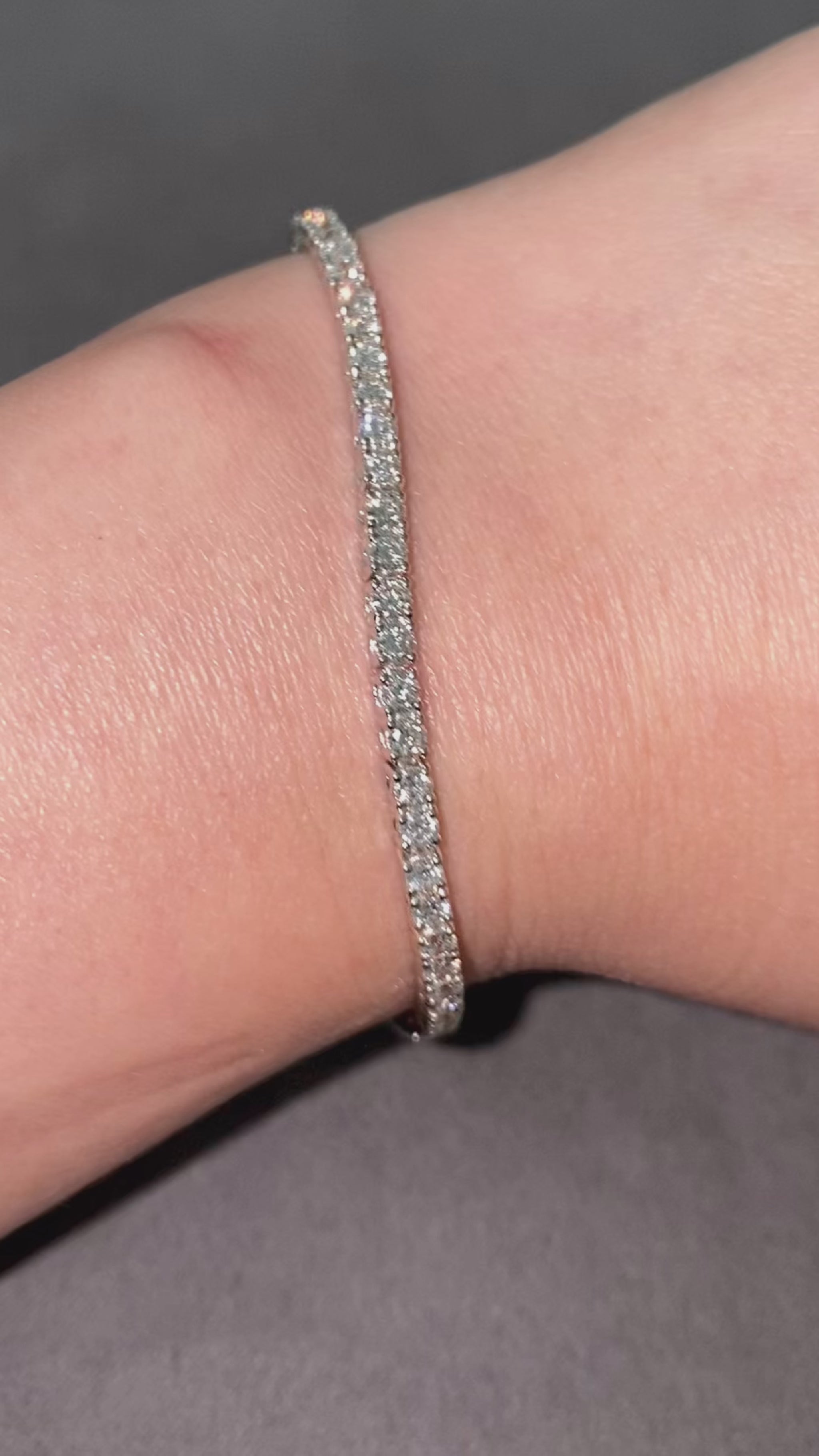 Realizzato in platino 950, questo splendido bracciale risplende con 3,62 carati di diamanti naturali a taglio brillante rotondo, che vantano un'eccezionale purezza VS e un colore G. Con una generosa lunghezza di 7 pollici (circa 18 cm), questo bracciale è completamente punzonato nel Regno Unito, il che lo rende un accessorio perfetto per ogni occasione. Regalati o regala a una persona speciale questo squisito tesoro! Lasciati conquistare dall'eleganza senza tempo di questo classico bracciale tennis di lusso, che unisce il fascino vintage alla maestria artigianale.